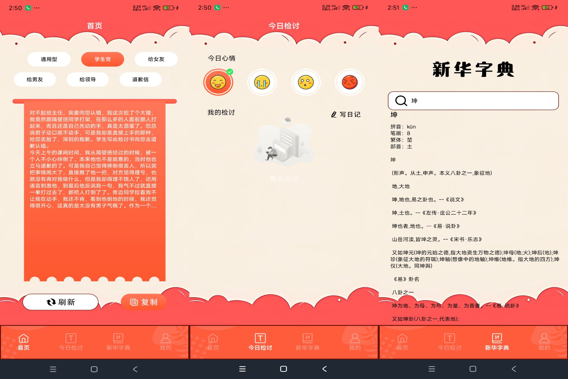一款非常好用的检讨书自动生成软件。专为调皮捣蛋的你而来,只需要输入关键字就能自动生成一片检讨文章,并且用户还能个性化定制,规定字数、内容等等,赶紧下载体验一下吧。(解锁去除广告)
