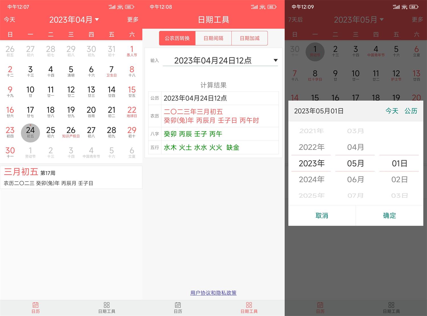 这是一款大小仅0.1MB的日历软件,有公历、农历、节日显示及国家放假提示等功能,并提示很多日期计算小工具,可以十分方便的查看其它日期的农历、节日、二十四节气等信息,能方便的显示当前日期距离下次国家放假还有多少天。